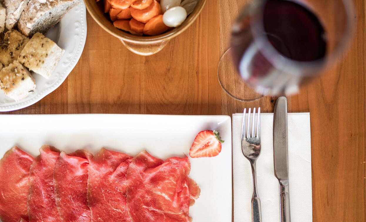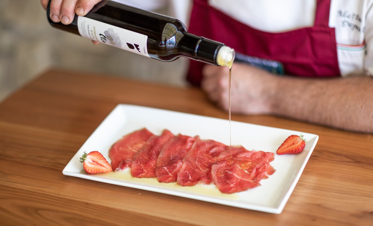 È un agriturismo che produce e vende i suoi vini, l‘olio extravergine d‘oliva, i salumi, gli sciroppi e coltiva i prodotti della terra e dove si mangia un‘ottima cucina tipica, come i canederli, la carne Salada, gli strangolapreti, il pane di molche, il coniglio, la pasta fresca fatta in casa e dolci.